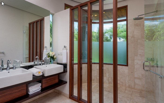 The Villa is divided over 3 distinct structures. The first offers a spacious and luxurious kitchen, with an upstairs bedroom with private bathroom. The second provides a living room and media lounge, with 2 upstairs bedrooms. The last includes a beautiful Master bedroom with its own private bathroom, as well as an outdoor shower and bathtub.