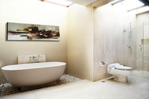 Free form swimming pool sits comfortably on spacious decently-manicured lawn giving a nice contrast of azure blue and tropical green. A narrow pathway between the round-house and the swimming pool leads to the main pavilion at the end of the plot. The main pavilion houses simple living-dining areas with kitchen, and two en-suited bedrooms on both sides. The master bedroom on the left facing a soothing artificial fountain has an en-suite with bath tub. The other bedroom on the right, directly facing the swimming pool, comes with a rain-shower en-suite.