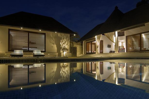 The villa is a managed compound of three self-contained private villas where each unit is individually gated and set within a tropical garden complete with its own pool. All three villas feature a different layout and varying number of bedrooms. However, each has as similar design aesthetic that includes a traditionally thatched rooftop with a distinct island style cone elevation over open-style living environment.