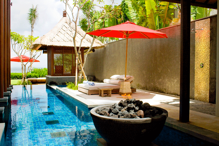 This 1 bedroom villa exudes passion, warmth and luxury. This lavish one bedroom super king-sized beachfront villa epitomizes decadent living, from shaded private walkways to a view of mystical Mount Agung from your personal bathing pavilion. Perched over a private infinity pool this intimate residence creates the perfect environment for a secluded escape. This beachfront oasis is completed with a fully equipped media room/study and dressing room ensuite.