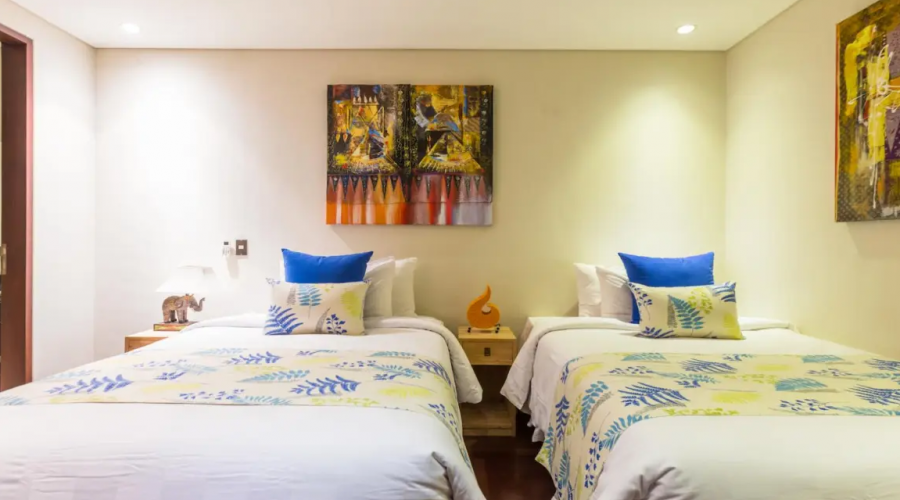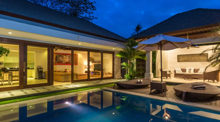 This luxury 3 bedrooms villa epitomes style, luxury and comfort. It is located right on the beachfront at Sanur in the gated complex of suites villa. The villa has 2 bedrooms with king sized beds a third bedroom with two single beds. This villa is a very stylish 3 bedrooms and 3 bathrooms villa set amongst the other luxurious villas.