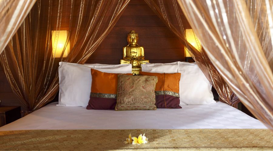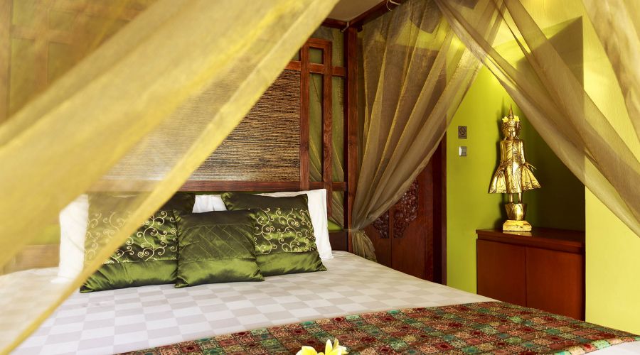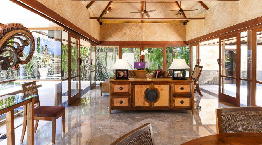 Outside in the terraced coconut-grove garden rolling down to the beach is an enticing 20-metre infinity-edge lap pool, complete with furnished sun deck, pool bar and relaxation pavilion. Alongside the villa is the jungle-fringed River Wos on the final meander of its journey to the sea.