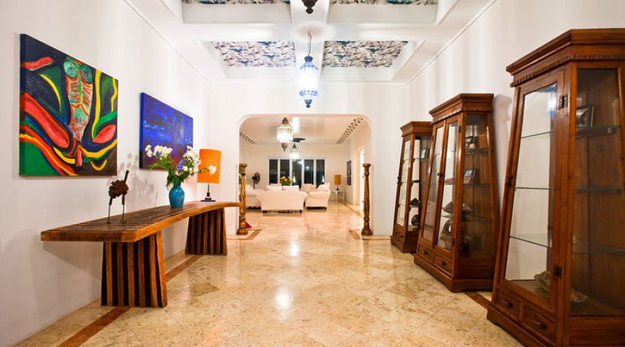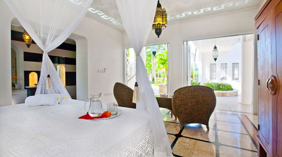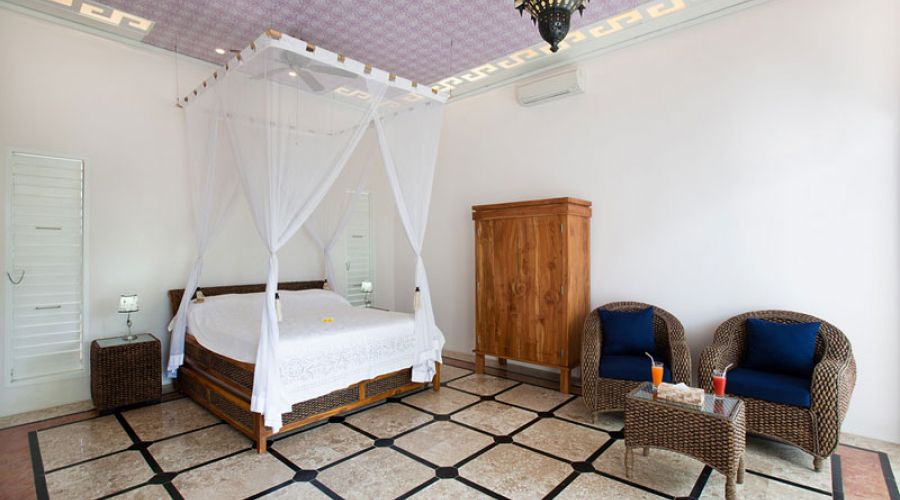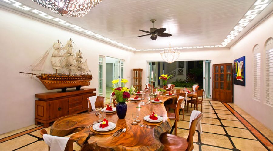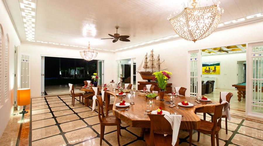 This plantation-style, wheelchair-friendly mansion, complete with elevator, blends Mediterranean, Moroccan and Dutch-colonial design, and accommodates up to fourteen adults and eight children. Guests can look forward to large entertainment areas, generous bedrooms, magnificent bathrooms, a vogue-style Chefs' kitchen, a banquet-size dining room (seats 24), sitting rooms, a billiard table, meet and greet areas, and enough full time staff to cater to every whim.