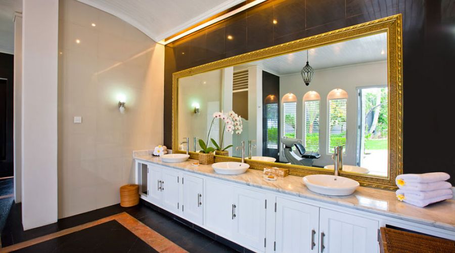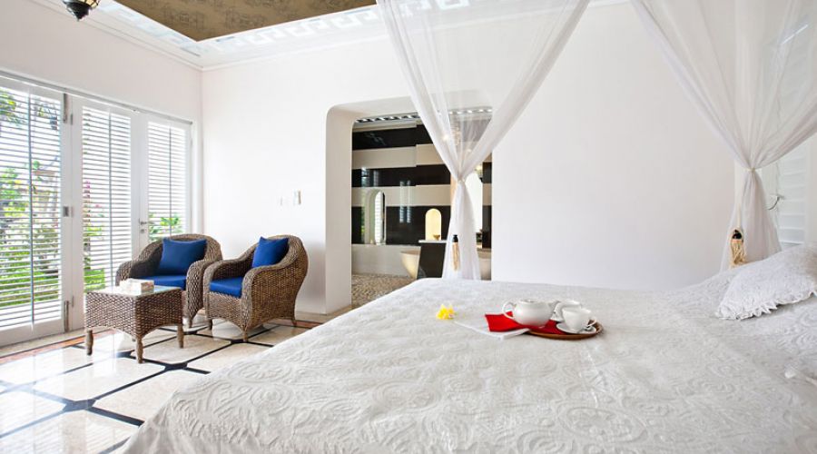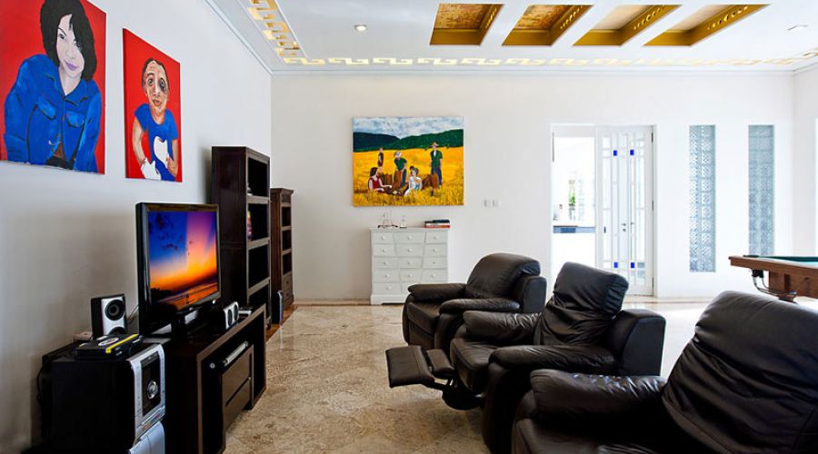 Furthermore, as one of the very few villas in Bali designed to be wheelchair/disabled friendly, the villa presents wide doorways and passageways, flat surfaces and huge easy-to-negotiate bathrooms, as well as an elevator between floors. It is ideally suited for families with children as four of the king-bedded rooms are equipped with a queen-sized, children's trundle bed underneath the main bed-frame, accommodating two kids in each, while an additional queen-size bed is situated in the upstairs living room.