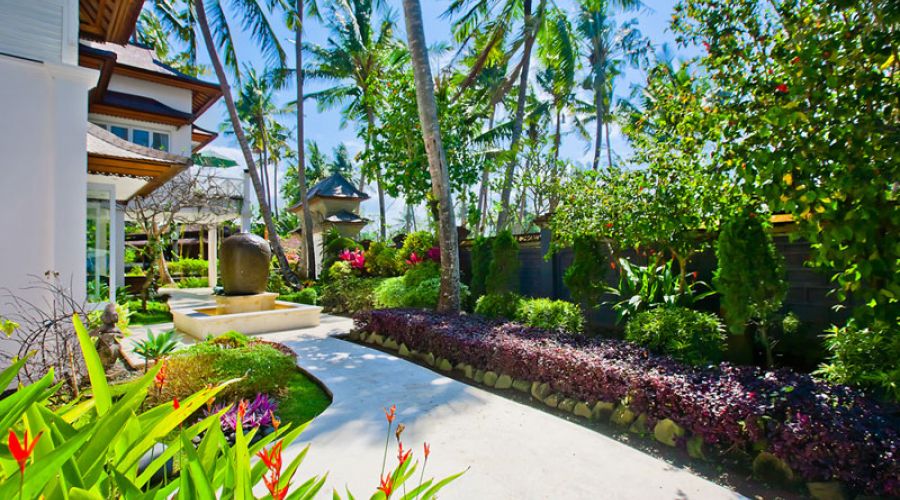 The villa is the perfect retreat for those seeking luxurious and private relaxation amid Bali's breathtaking surroundings in the tiny fishing village of Cucukan, just 1 kilometre from the Bali Safari & Marine Park, and about half-an-hour’s drive north from Sanur. The property boasts 5000 square metres of manicured gardens, water features, a reflection pond, and flat lawns, which are perfect for weddings and events.