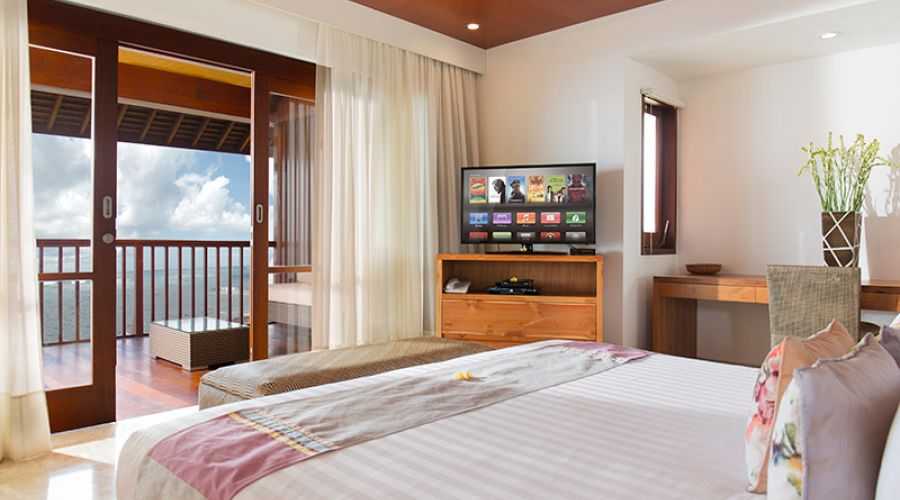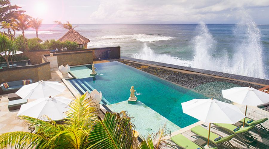 Floor-to-ceiling windows gift the villa with breathtaking panoramas of the Indian Ocean and Bali’s Badung Strait. And the gentle sea-breeze that greets you as you cross the villa’s sweeping deck leave no doubt as to how this spectacular beachfront property got its name.