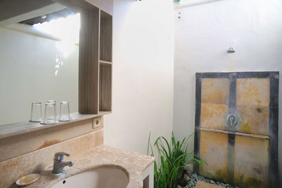 locations in the ever popular Seminyak and within walking distance to the beach and from each other, a combination of comfort and elegance in every room. The beach is literally just around the corner and it is easily accessible to Seminyak and all the popular areas of south-western Bali has to offer. World class restaurants, boutiques, galleries and bars are just some of the attractions within walking distance, which are almost identical the are located side by side and shares a long terrace which can be divided using a fabric curtain. The suites feature charming bedrooms decorated with ethnic touches of the archipelago, a fully functioning kitchen, an outdoor shower, a spacious terrace by the pool and a mezzanine. A perfect retreat from life's hustle and bustle.