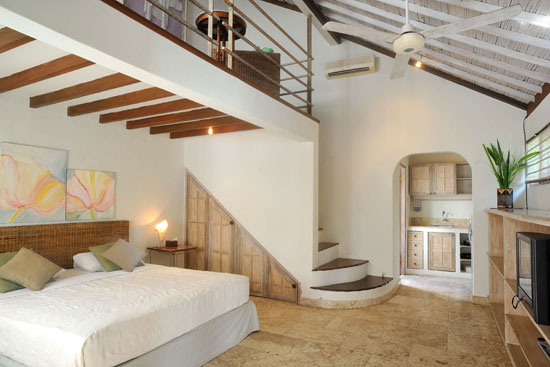The suites feature charming bedrooms decorated with ethnic touches of the archipelago, a fully functioning kitchen, an outdoor shower, a spacious terrace by the pool.