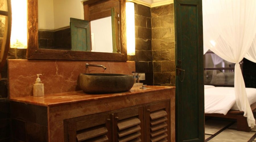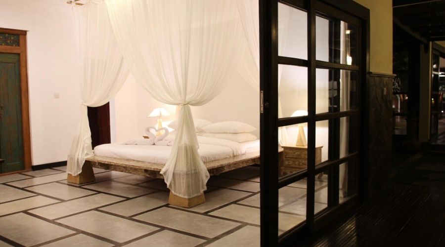 The spacious air-conditioned villa is warmly decorated with wooden furnishings and parquet flooring. Fitted with a kitchen, ample of living area and en suite bathroom with bath or shower.
