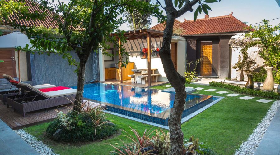 The villas are a quiet and cosy resort offering 2, 3 and 5 bedroom villas with luxurious accommodation and numerous amenities. Located on a small and quiet street in Oberoi, Seminyak, The villas are just steps away of Jalan Kayu Aya, the famous “Eat Street”. Expertly situated near a variety of shops, numerous stylish boutiques and elegant restaurants, such as KuDeTA, Rumours, Ultimo, Trattoria. The villas are extremely close to the marvellous Indian Ocean, its exquisite sandy beaches and crystal clear waters (about 500m).