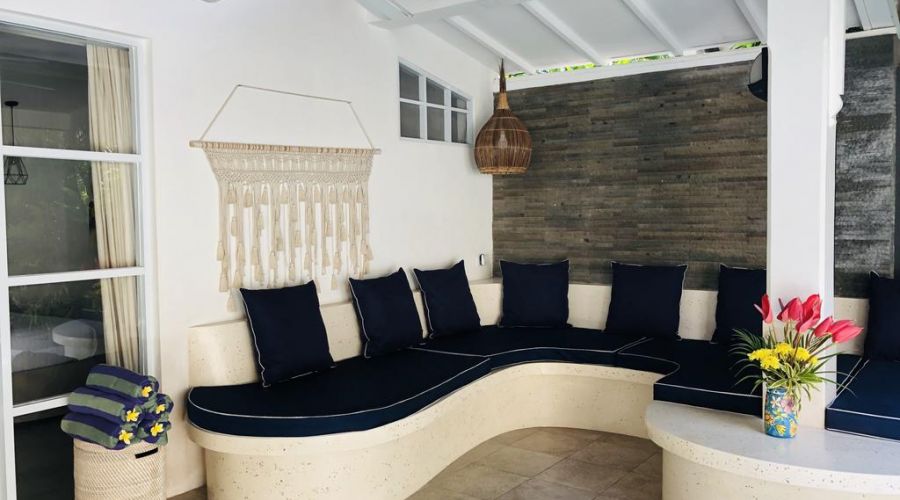 Most of the sprawling lawns have now been replaced by a hand-dug 13m long x 2m deep salt-water pool. The original villa has been extended in all directions with 6 new bathrooms. The 2 bedroom villa has been recently re-newed creating a modern oasis with 2 new bedrooms, new bathrooms and a gorgeous natural stone salt water swimming pool.