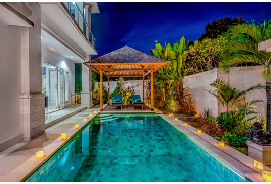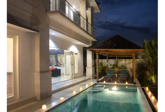 This villa is a modern two level villa located in the absolute heart of the Petitenget area in fashionable Seminyak.