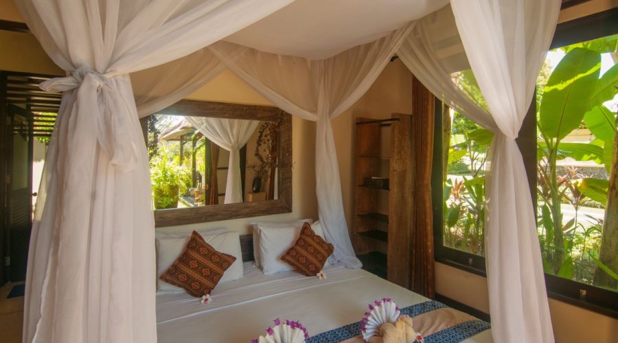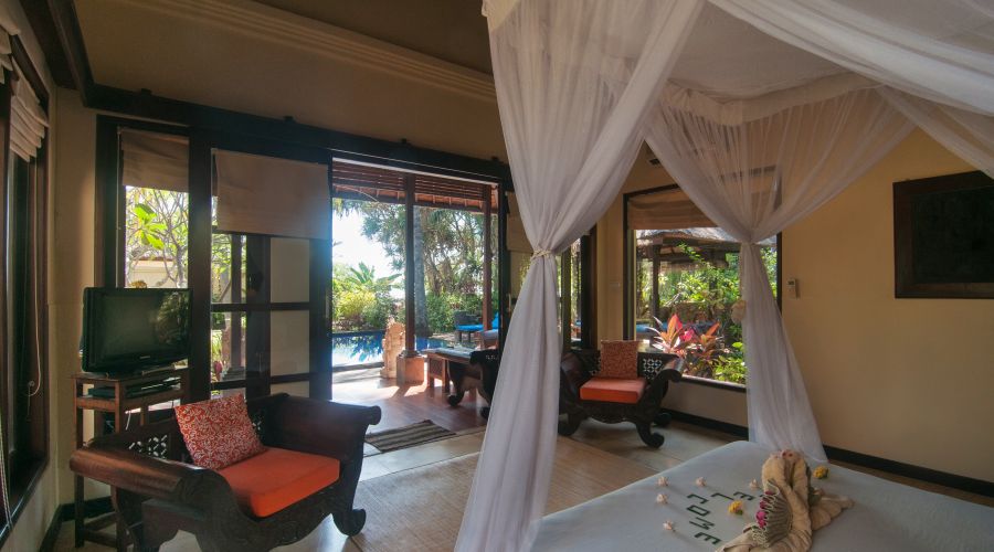 We offer 11 Garden View Villas: 7 Garden View, 2 Garden View Deluxe and 2 Garden View Family. Each Villa has a unique floor plan and décor, and all include private pools, indoor kitchenettes, cable TV, indoor and outdoor showers, and poolside gazebo.