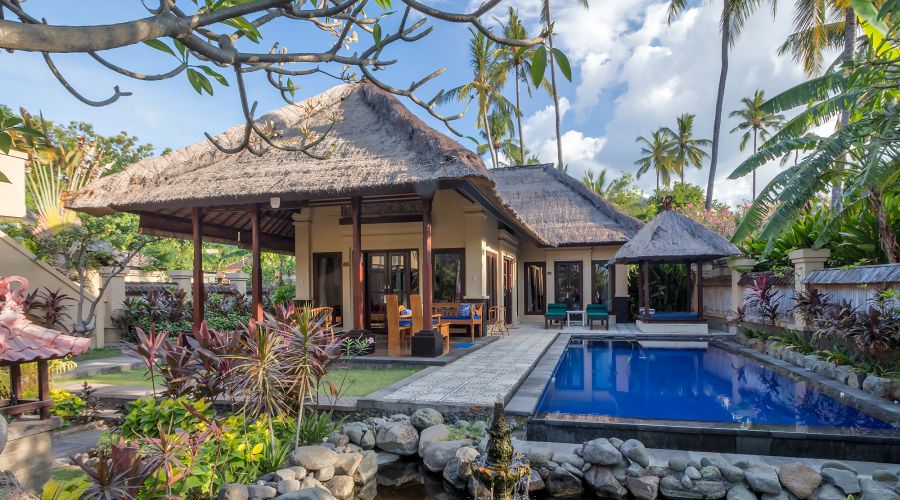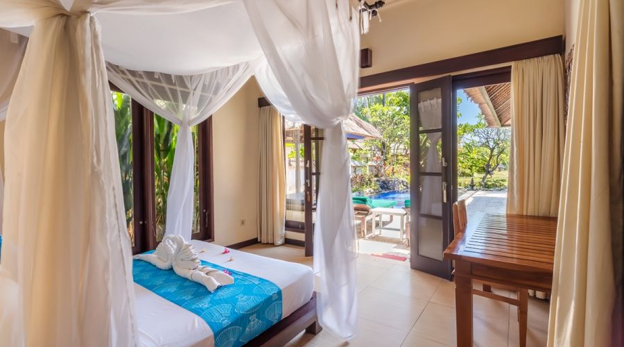 We offer 11 Garden View Villas: 7 Garden View, 2 Garden View Deluxe and 2 Garden View Family. Each Villa has a unique floor plan and décor, and all include private pools, indoor kitchenettes, cable TV, indoor and outdoor showers, and poolside gazebo.