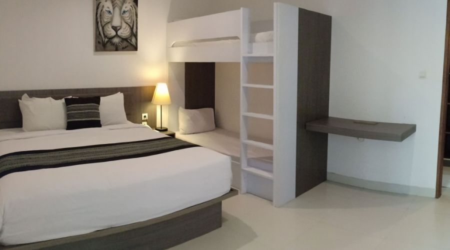 This 1 bedroom Family Suite benefits from double facilities and can comfortably sleep up to four adult guests or parents travelling with older children. The décor is minimalist with a soothing grey colour palette balanced elements of wood and random work of local artistry.
