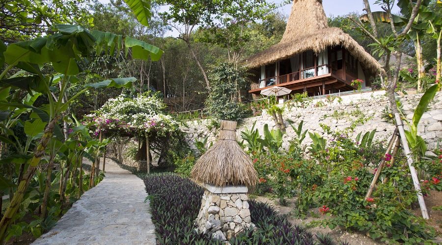 The three Sumba Houses are located on a hill top affording magnificent views of the entire Nihiwatu estate and bay. Each one-bedroom villa is designed to reflect a two-storey Sumbanese house; entry level: deck, living room, bathroom and private infinity pool (27,9 m2); upper level: bedroom opening to a platform among the trees (41,46 m2), bathroom with elevated outdoor jungle shower.