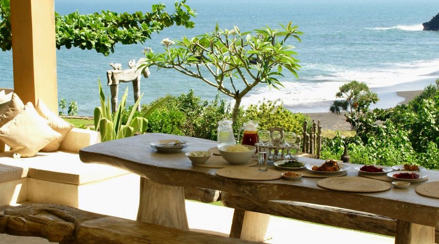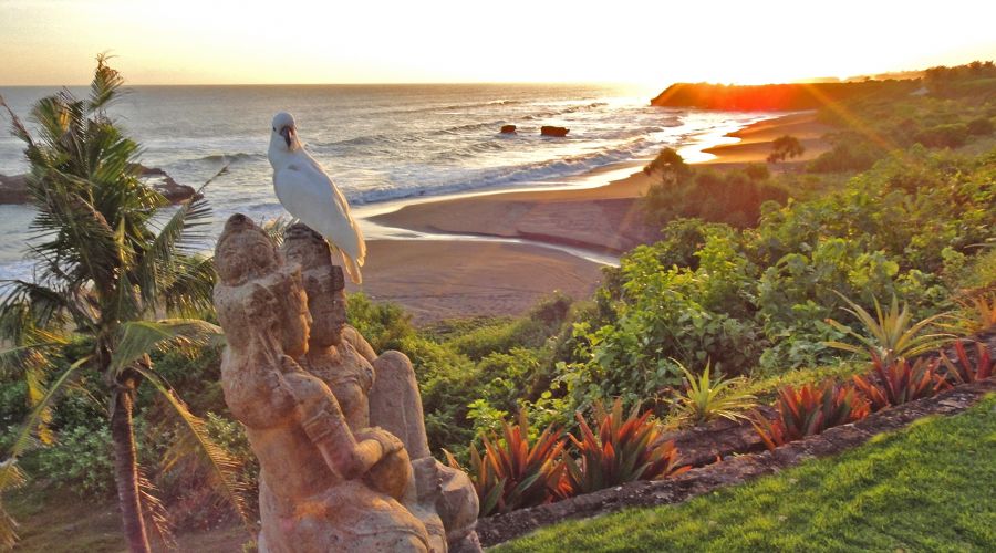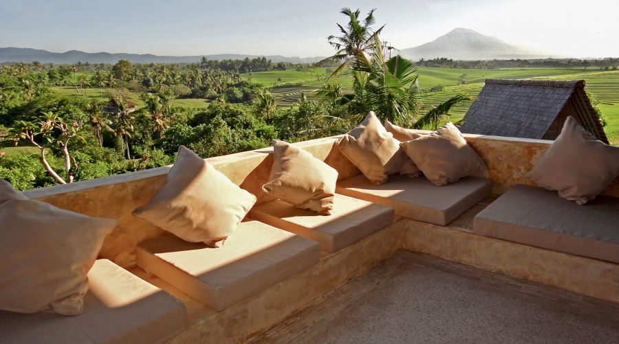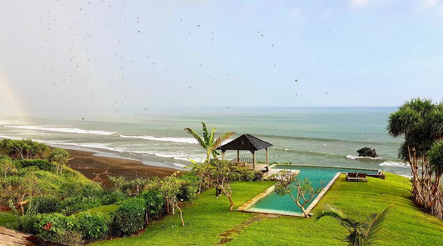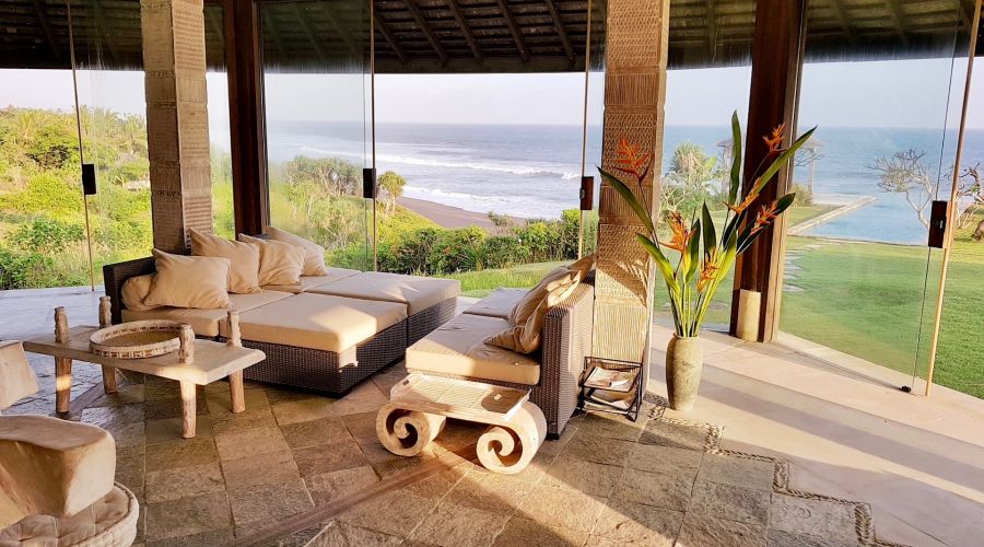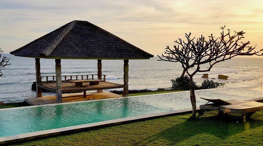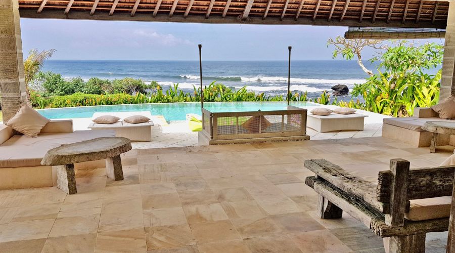 With Sunset and Sunrise, perched on a cliff beside a remote, windswept beach on Bali’s west coast, with a magnificent 360-degree view of mountains, rice fields and the Indian Ocean.
