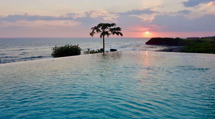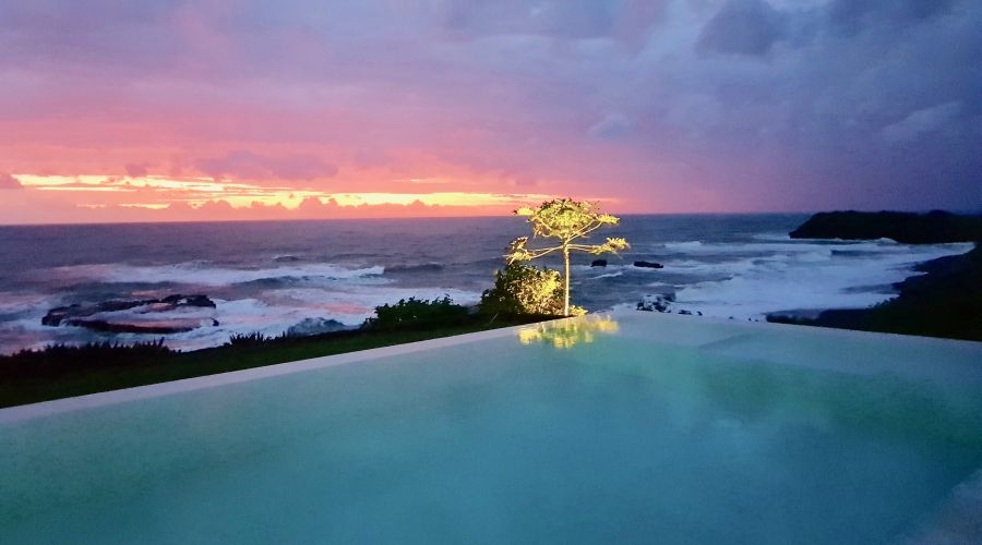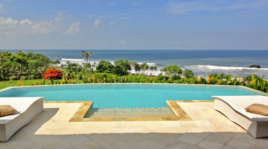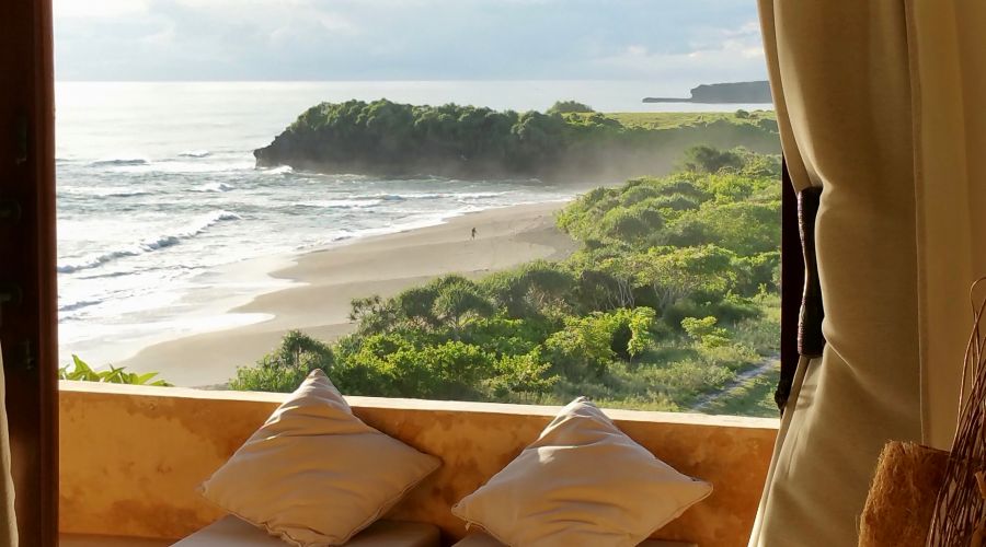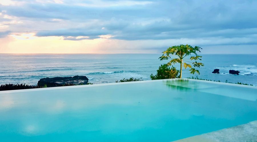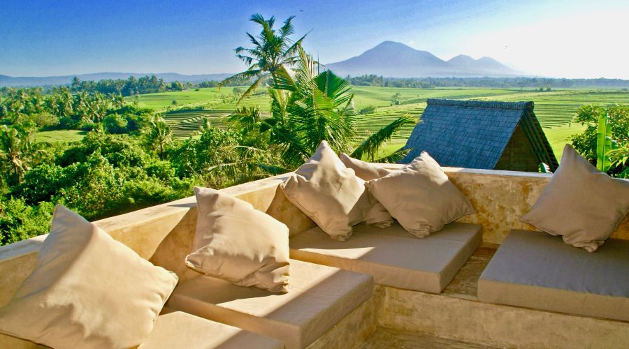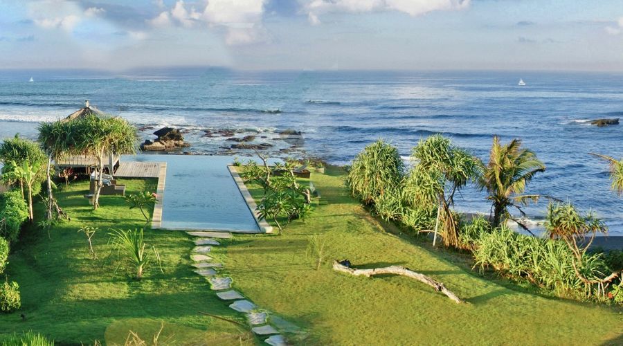 With Sunset and Sunrise, perched on a cliff beside a remote, windswept beach on Bali’s west coast, with a magnificent 360-degree view of mountains, rice fields and the Indian Ocean.