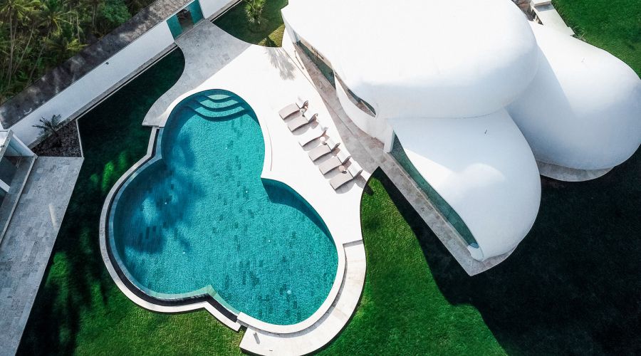 This villa stands out from the myriad vacation rentals in Bali, thanks to its unique architectural design and interiors. As its name suggests, the white, circular exterior of the home resembles a fluffy white cloud. Set in a prime beachfront location, with expansive outdoor spaces and a serene environment far away from the tourist hotspots, this villa makes a great option for friends and families looking for a relaxed getaway in Bali.