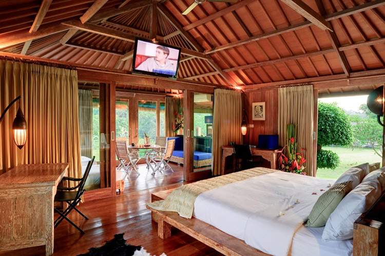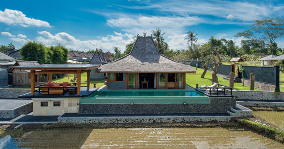 -The villa is surrounded by a walking tropical garden, with two stunning swimming pools, as well as a gazebo-spa and bungalow, with a vast view on rice fields.