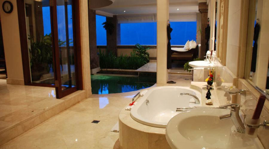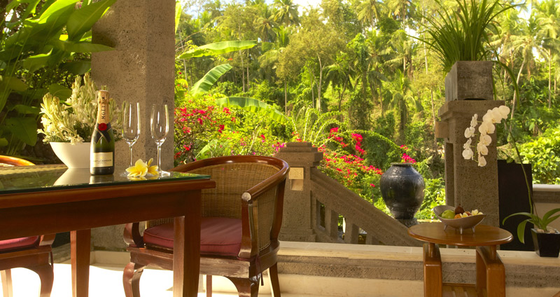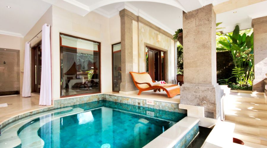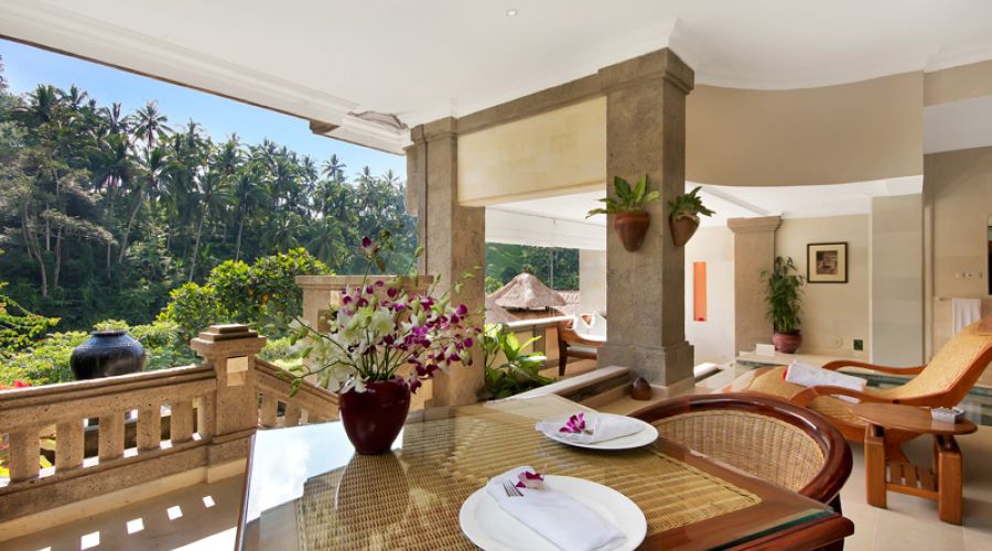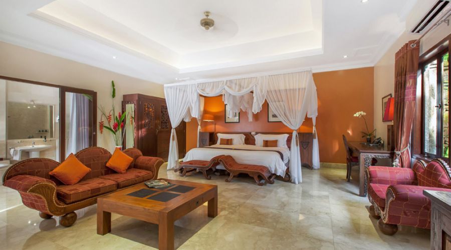 Each of these private villas is 150 m2 (1615 ft2) in size. The bedroom is integrated with a generous living space, spacious marble bathroom with twin vanities bath and separate shower all open plan and leading to the terrace with a dining table and relax couples chair.