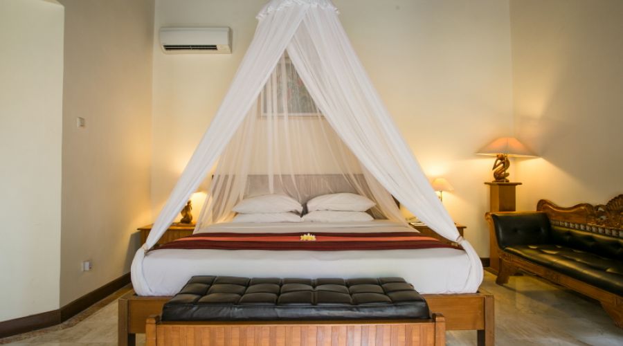 This villa made by Indonesian architecture, modern amenities and luxurious comfort, forming a tranquil world of your fantasies.This retreat is nestled in plush tropical gardens, perched by a river and surrounded by lovely rice fields. Each of the rooms are integrated with this beautiful landscape, maintaining a harmony with the natural environment, embracing guests with a welcoming, therapeutic and peaceful energy. This villa has a total of 3 luxurious bedrooms, with options for single, double, triple and quadruple occupancy.