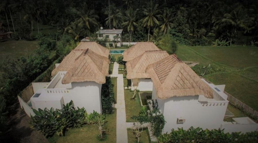 This villa features a balcony offering stunning views of the rice fields and a private plunge pool. It features air conditioning on the 1st floor and fan on the 2nd floor with coconut wood flooring
