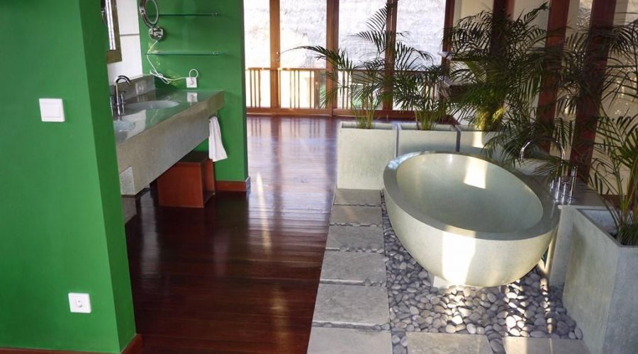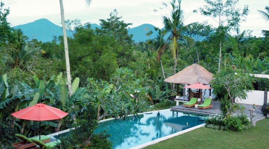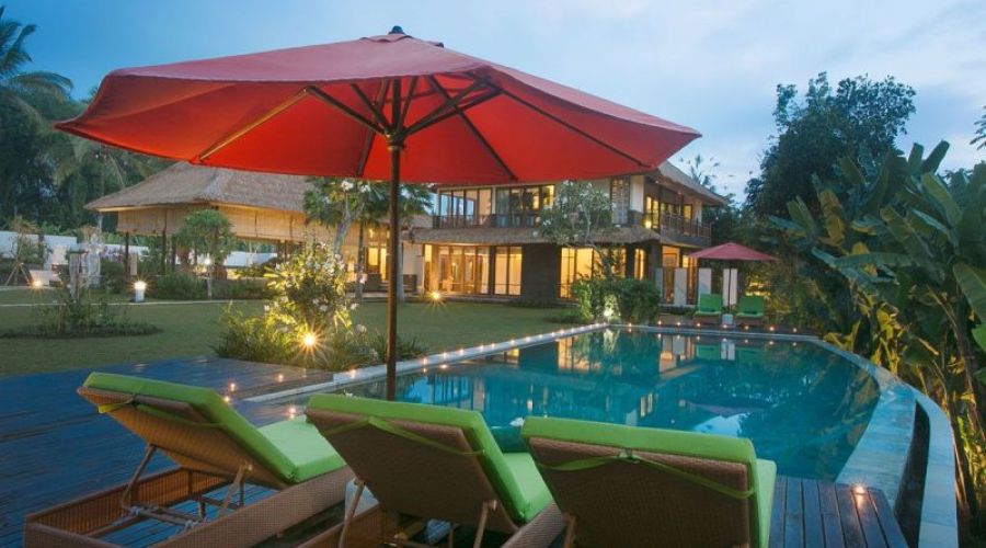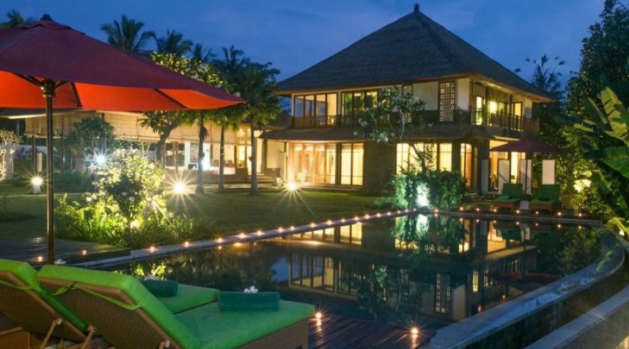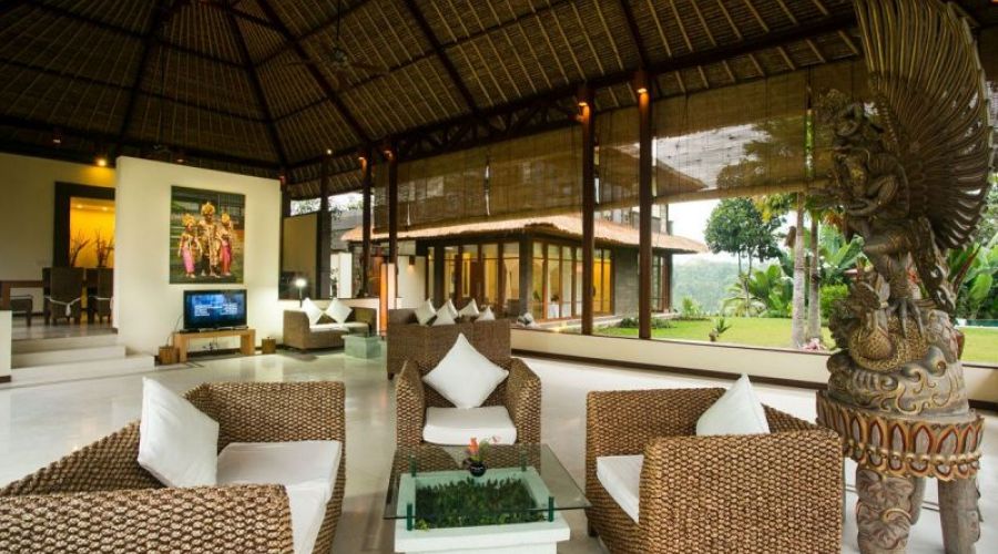 This 4 bedroom villa is thirty minutes north of Ubud amidst lovely rice paddies, right at the rim of the mighty river Ayung – designed on the basis of the age old Vedic laws of building. The villa has 4 bedrooms, swimming pool, large living and dining areas, fully equipped kitchen, a wonderful Balinese garden of 3.600 m² with pond, fountain and small waterfall, and library /TV room. The guests will certainly enjoy many pieces of art such as paintings and statues by renowned Balinese artists. It’s needless to say that the friendly staff will cater for your every need. With Ubud – only a short drive away – you will enjoy all the highlights the culture capital of Bali offers. This villa is especially family-friendly.