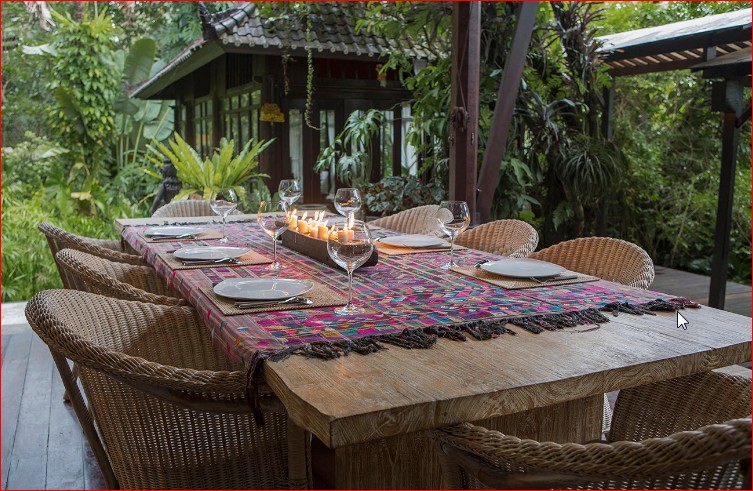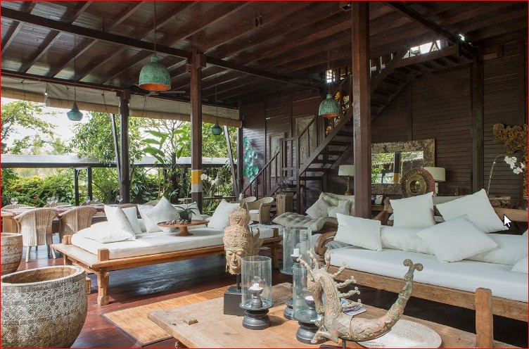 The villa rooms are spread throughout its landscaped tropical gardens on the banks of the river.