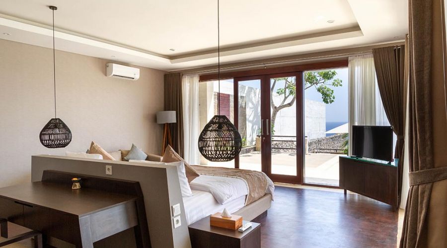 An Oceanview villa located in the Uluwatu area. Uluwatu is a place on the southwestern tip of the Bukit Peninsula of Bali. Majestically perched on the cliff, the villa directly faces the beautiful blue Indian Oceans.