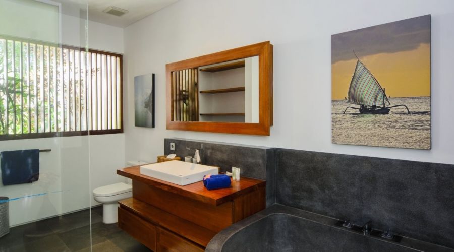 The villa is 10mn from Seminyak, 10mn to Berawa beach and also only 5mn to the famous Canggu Club with all its facilities (tennis courts, gym, bowling alley, soccer field, splash park and bounce park – not to mention it’s cafes and restaurants.